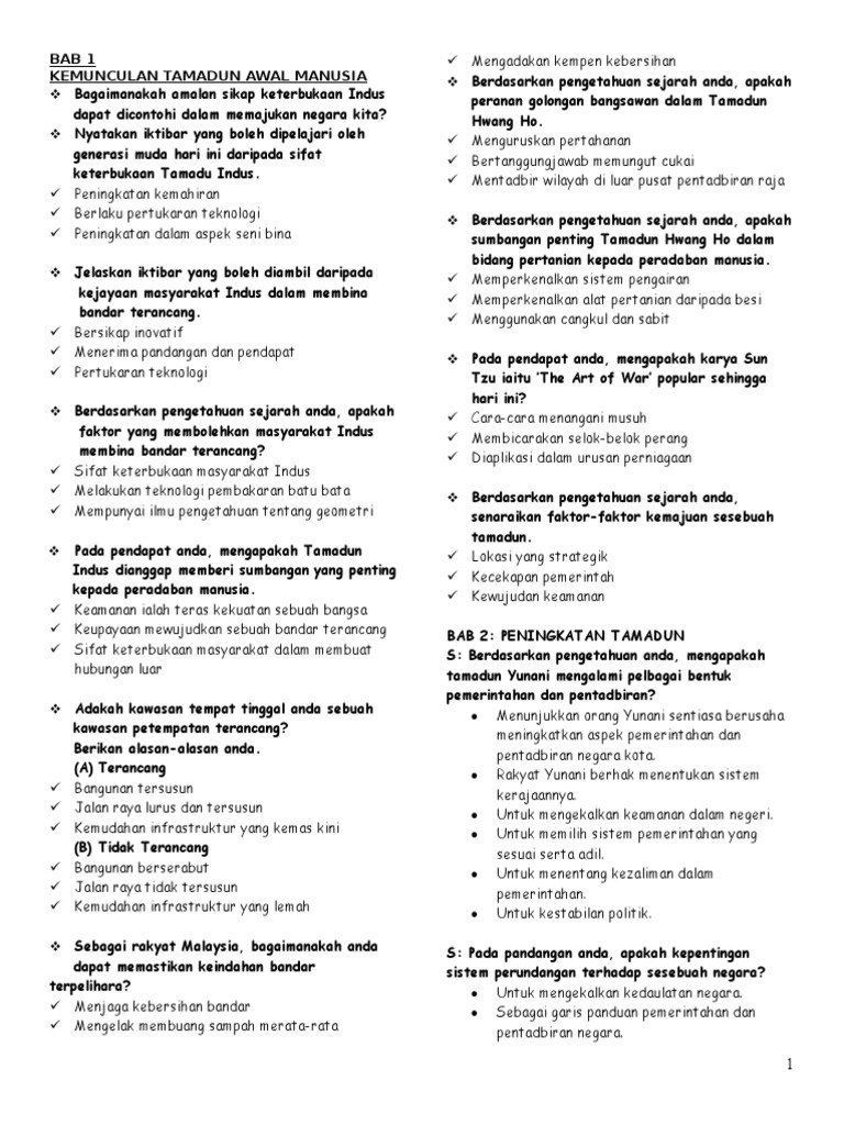 HIMPUNAN SOALAN DANJAWAPAN KBAT SEJARAH SPM 39 Gagahmenghadapi pelbagaimasalah Mengangkat martabat bangsa dan negara di persada dunia Bermoral dan beretikasetiakepada raja dan negara Berbudaya unggul penyayang Kepatuhan kepadaagama Pengamalan budaya dantradisi yang cemerlang KBAT MENGANALISIS. Di samping itu rakyat perlulah menumpukan taat setia yang tidak berbelah bahagi kepada raja dan negaraSejarah telah membuktikan bahawa rakyat yang tidak taat setia akan mengakibatkanb kedaulatan negara akan tergadaiRakyat yang mengkhianati negara sendiri akan berdosa besar kerana pada hakikatnya golongan tersebut sanggup mengorbankan kedaulatan dan maruah demi kepentingan diri sendiri bagai enau dalam. Di samping itu pihak sekolah juga merupakan penjamin masyarakat berbilang kaum yang tinggal di negara kita agar hidup dalam keadaan aman dan harmoni.