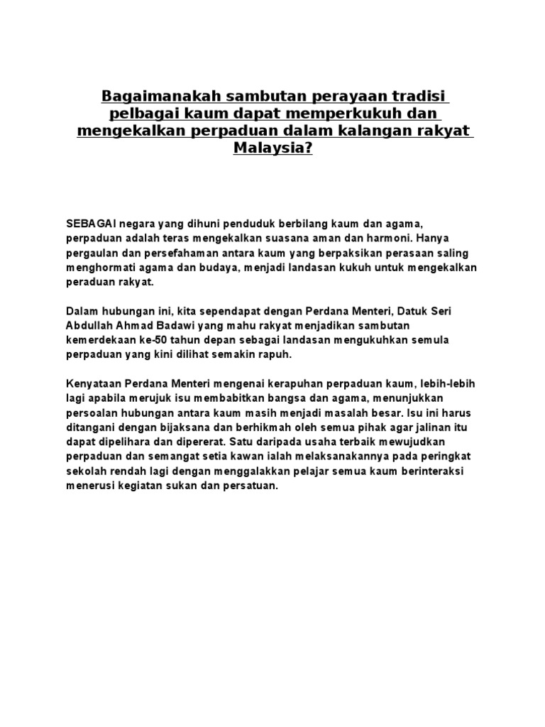 Contoh Langkah Mengekalkan Perpaduan Kaum Tugasan Sejarah Pt3 2014