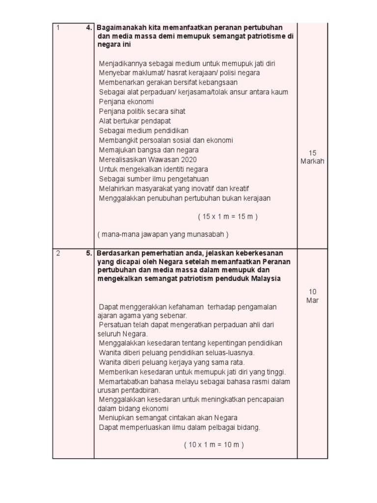Dalam hal ini mereka perlu diberikan bimbingan latihan dan cara-cara untuk memulakan sesuatu industri desa. Setiap anggota masyarakat dapat membentuk identiti dan nilai kebersamaan serta perasaan cinta dan bangga akan tanah airnya sendiri. 1 HIMPUNAN SOALAN JAWAPAN KBAT SEJARAH SPM 1249 2.