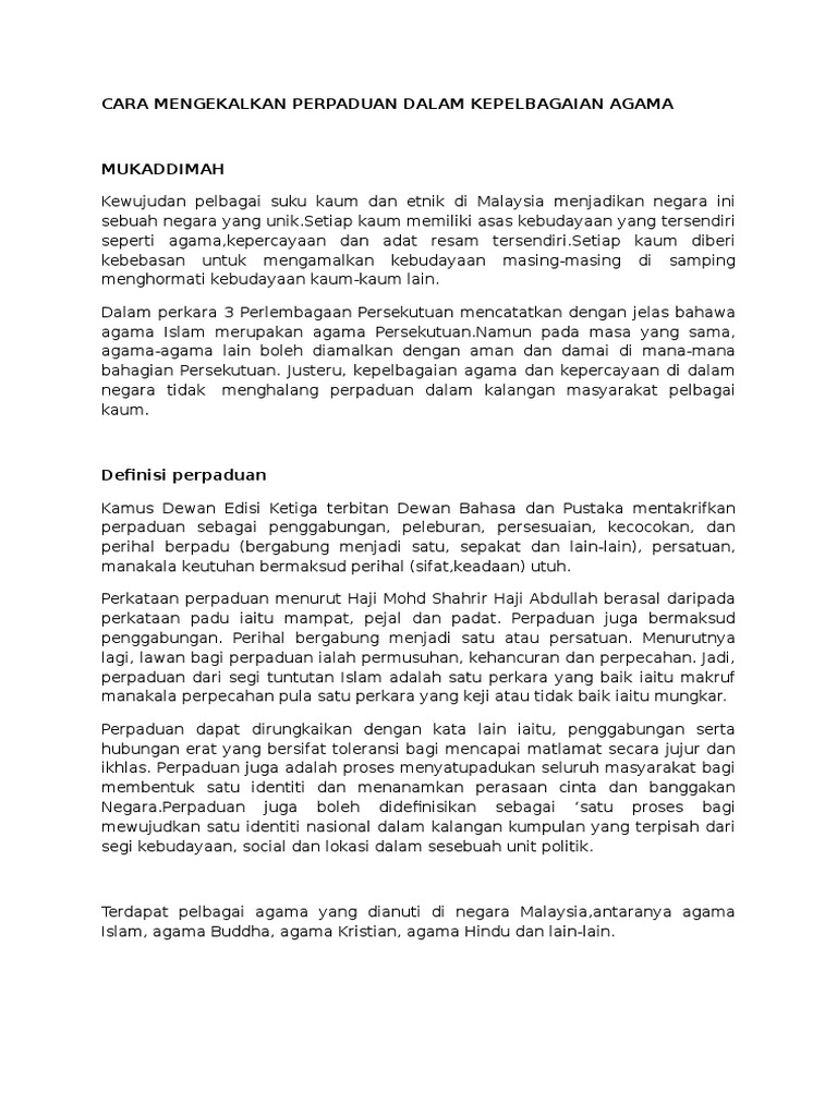 Cara Mengekalkan Perpaduan Dalam Kepelbagaian Agama Pdf