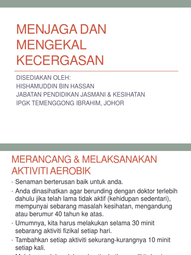 MENJAGA DAN MENGEKAL KECERGASAN MERANCANG MELAKSANAKAN AKTIVITI AEROBIK Senaman. Kecergasan mental tidak perlu menghabiskan banyak masa anda. Kualiti hidup dan kecergasan fizikal kita akan bertambah baik melalui aktiviti fizikal yang kerap.