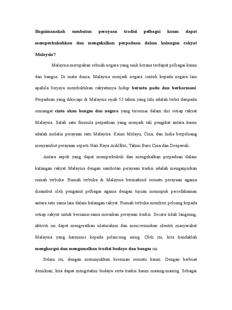 Bagaimanakah Sambutan Perayaan Tradisa Pelbagai Kaum Dapat Memperkukuh Dan Mengekalkan Perpaduan Dalam Kalangan Rakyat Malaysia. Kepelbagaian perayaan di negara ini turut membuka banyak kebaikan kepada negara dan masyarakat yang mendiami negara tercinta ini. Perkataan Jamu Sendiri adalah singkatan dalam bahasa Sanskrit.