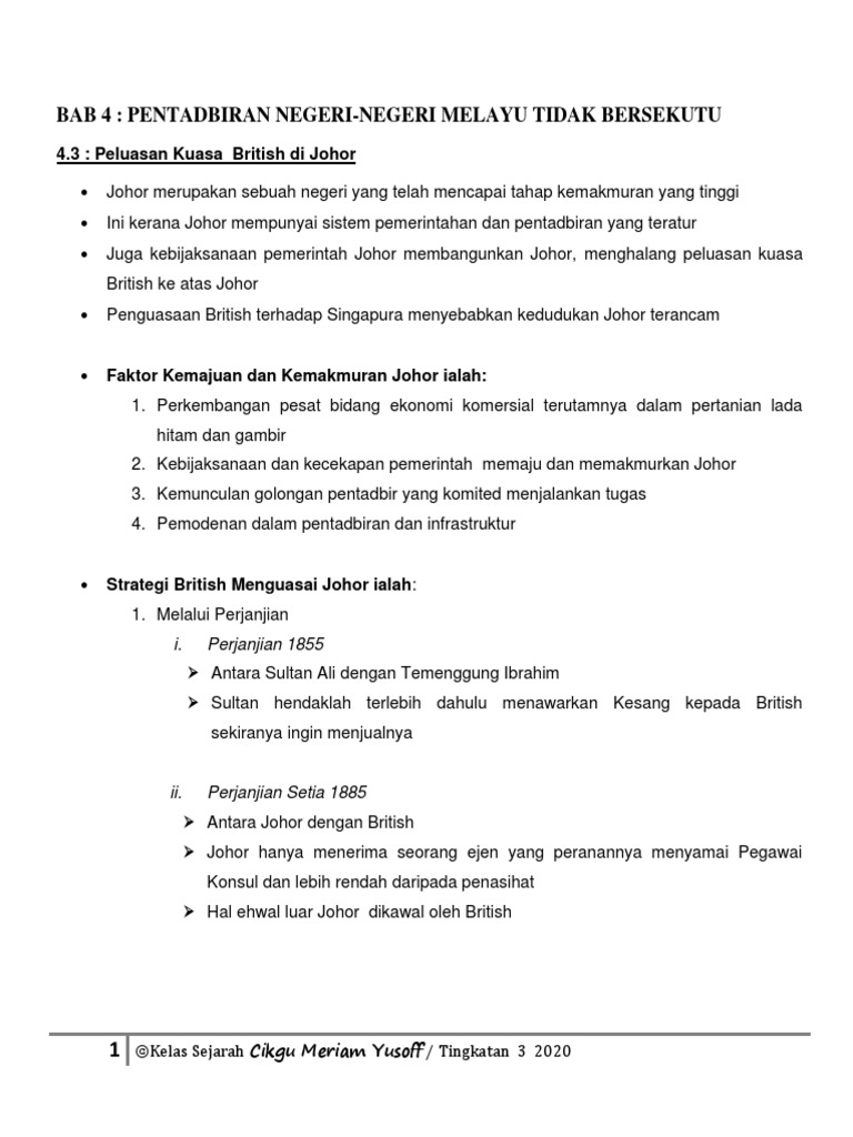 Bab 4 Pentadbiran Negeri Negeri Melayu Tidak Bersekutu 4 3 Peluasan Kuasa British Di Johor